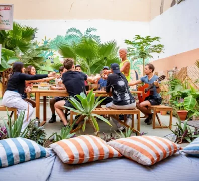 The hostel is a vibrant retreat in the heart of Triana, Las Palmas de Gran Canaria, set in a charming historic building with a lush garden of banana trees, colorful murals, and a creative, welcoming atmosphere. Guests enjoy spacious bunk beds, cozy communal spaces, and daily activities like yoga, surf lessons, and family dinners that bring travelers together. More than just a place to sleep, the hostel is a home away from home for backpackers, solo adventurers, and digital nomads seeking community and unforgettable experiences.